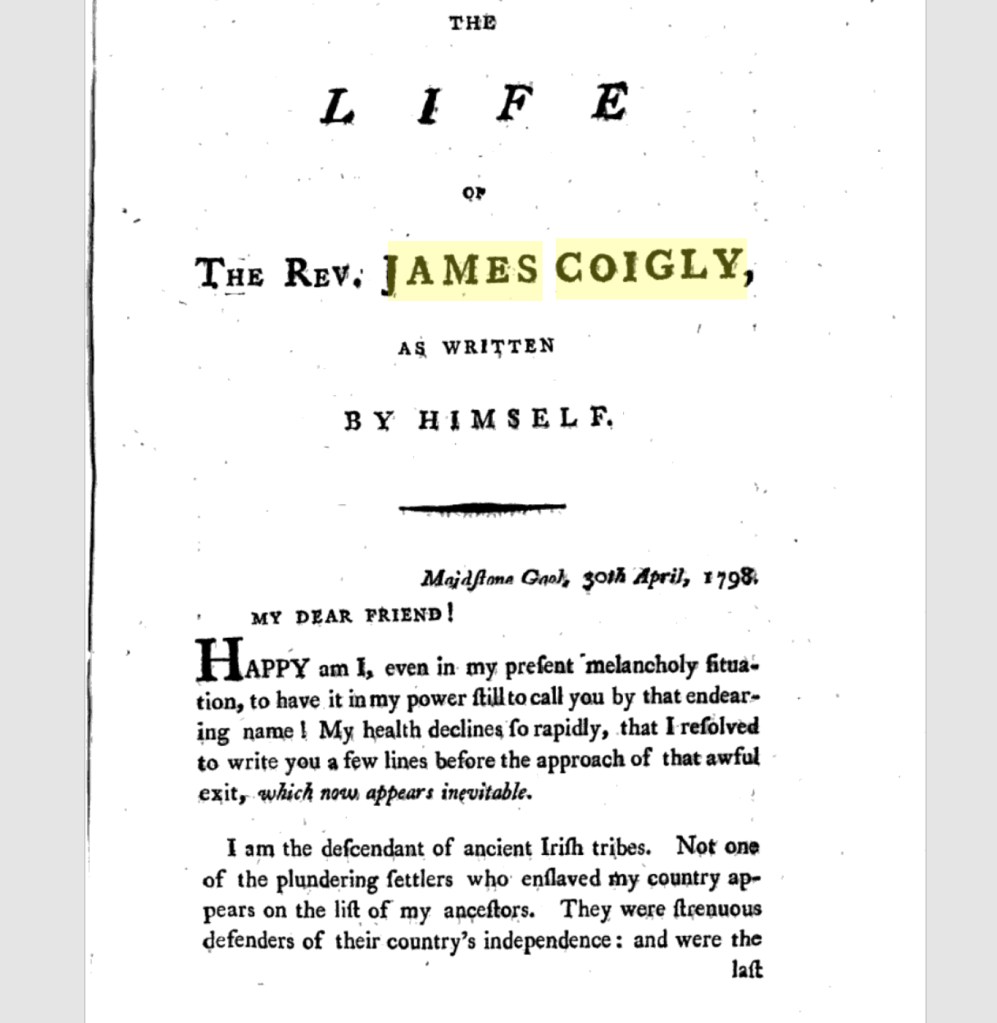 None more so than Catholic priest and United Irishmen Fr James Coigly, who wrote his personal testament in Maidstone in 1798, as he awaited execution.